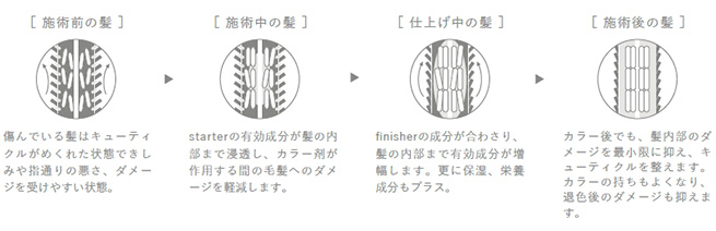 カラー剤などが施術中髪内部で作用している間にも毛髪へのダメージを抑えます。